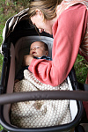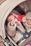 - Большой капюшон полностью закрывает малыша от непогоды и любопытных глаз.