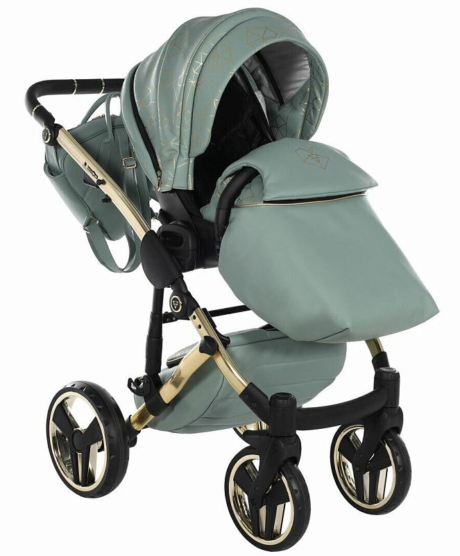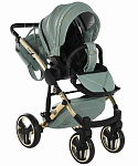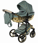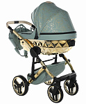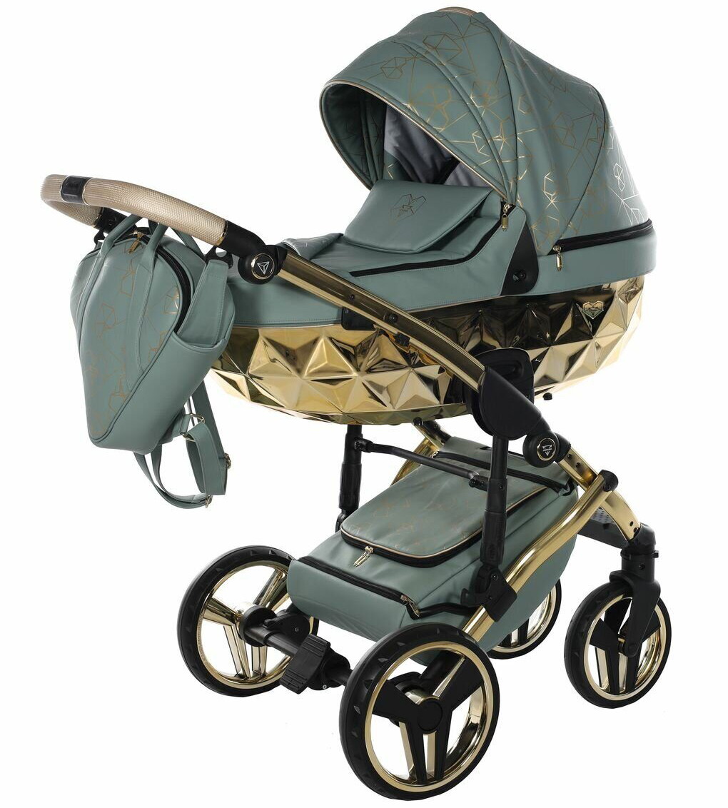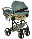 Детская коляска Junama Diamond Heart 2 в 1 JH-03 зеленая кожа/золотой короб/рама золото
