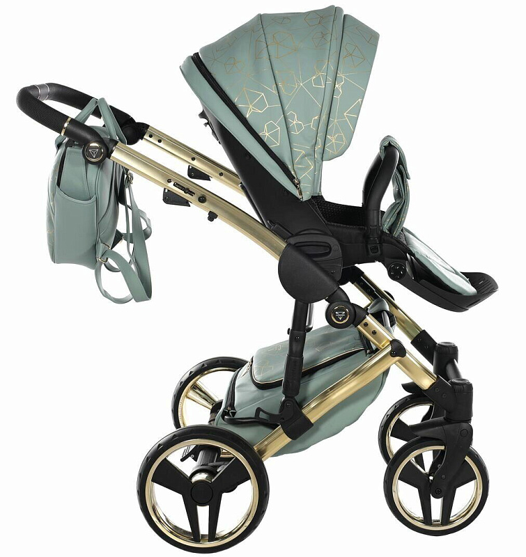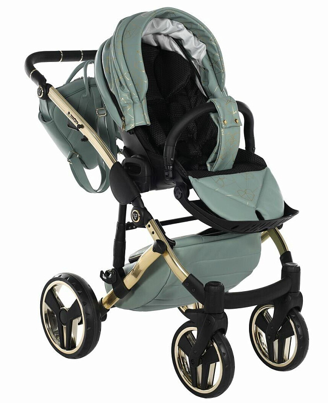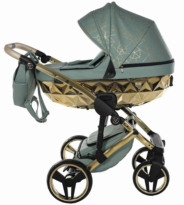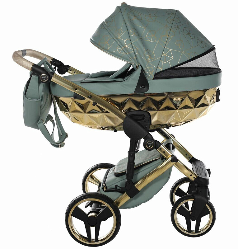Детская коляска Junama Diamond Heart 2 в 1 JH-03 зеленая кожа/золотой короб/рама золотоНет оценокХарактеристики