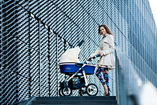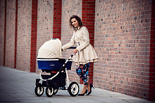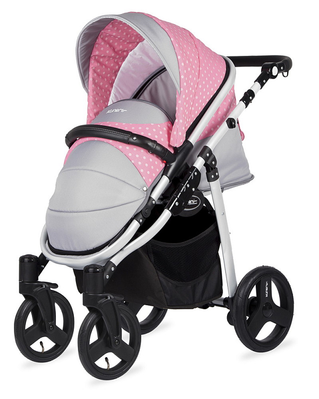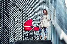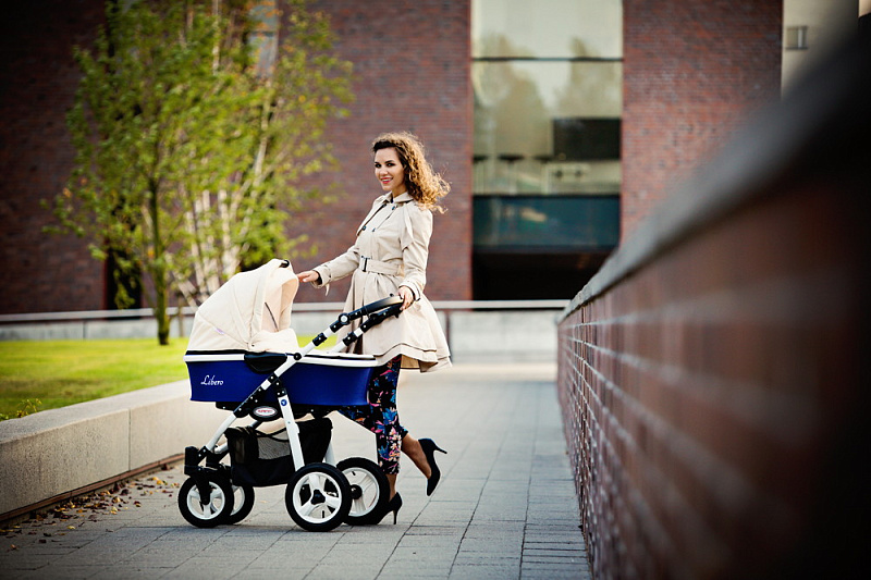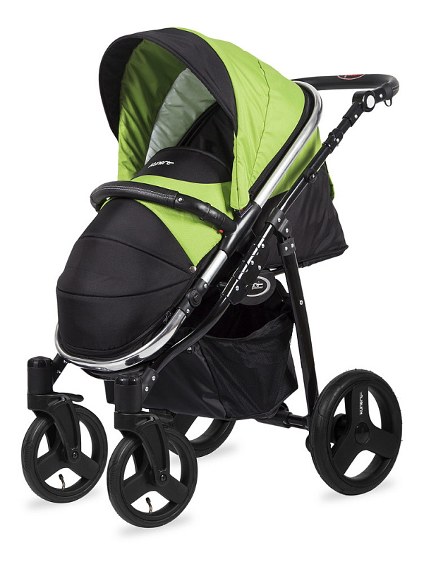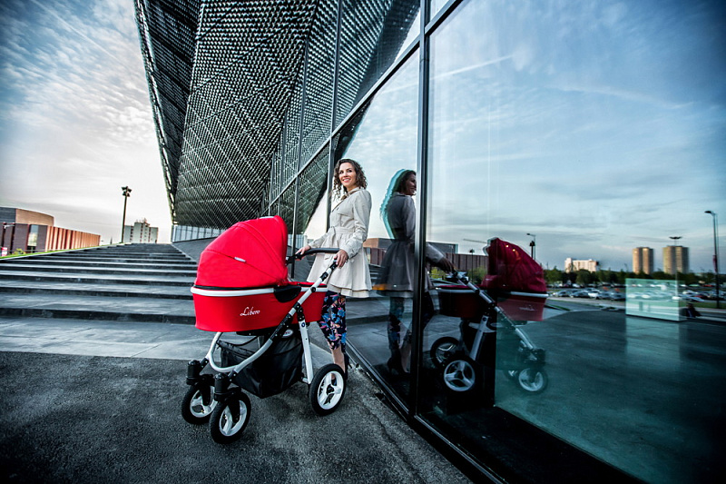 - Разная ширина передней и задней оси упрощают управление коляской, делают ее более маневренной и удобной для прогулов в мегаполисе.