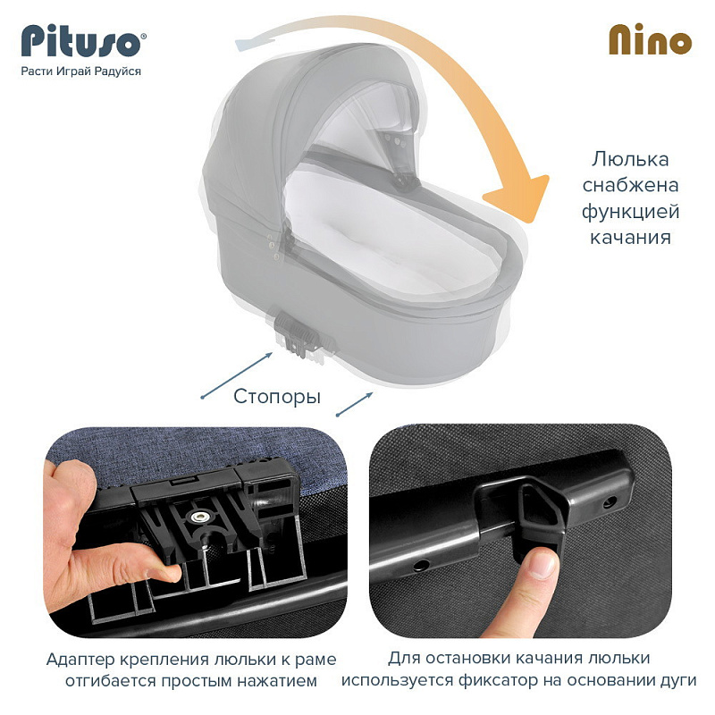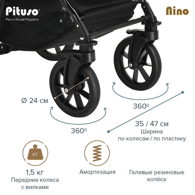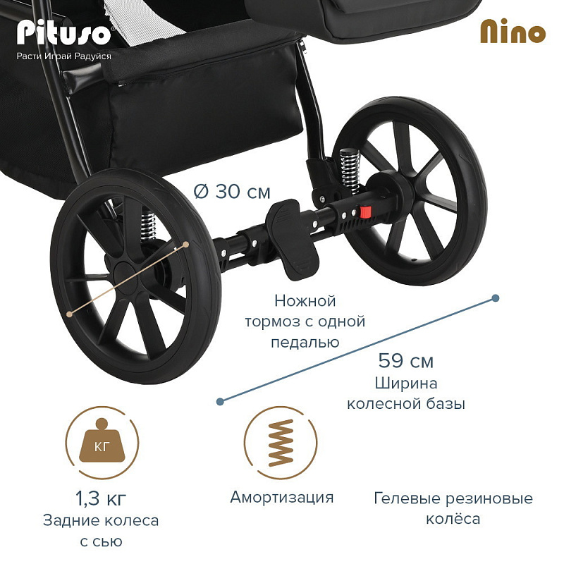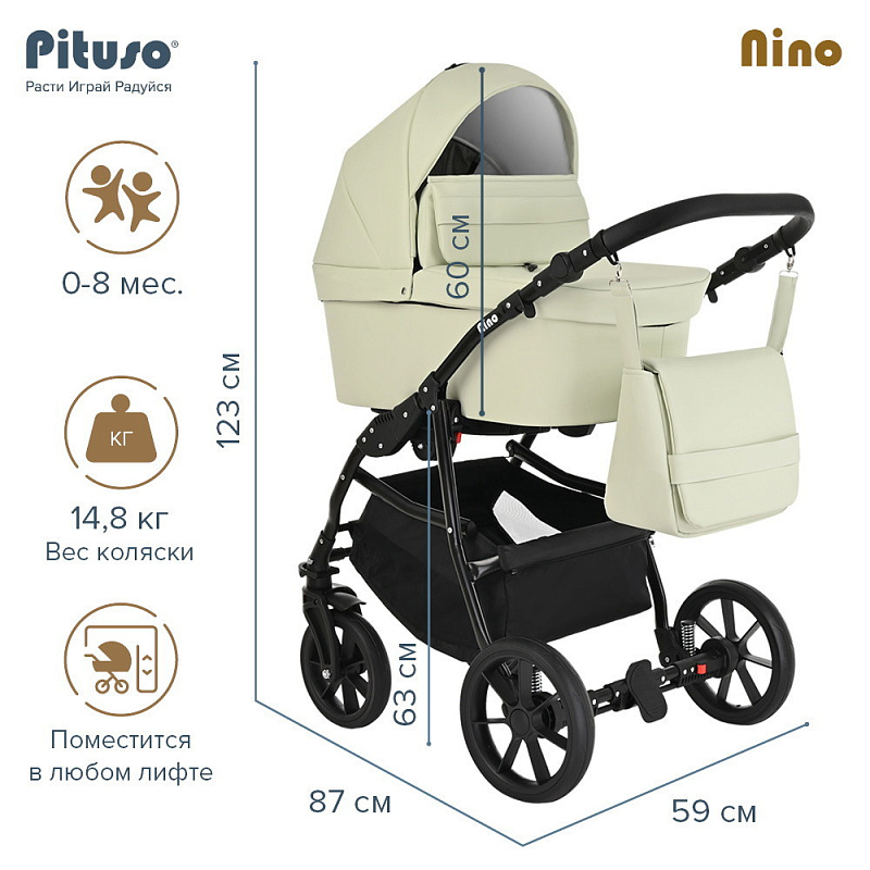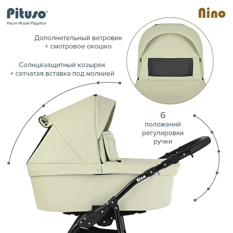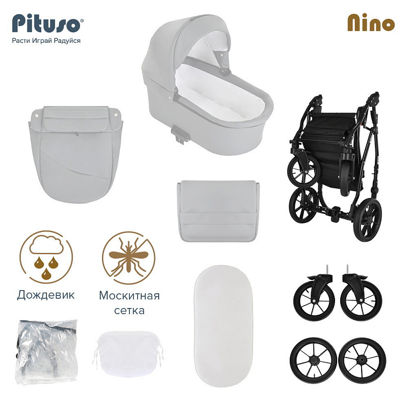 Коляска PITUSO NINO - покорит сердца молодых родителей своей практичностью и комфортом. Модель отличается стильным и современным дизайном, скромными габаритами и сравнительно небольшим весом