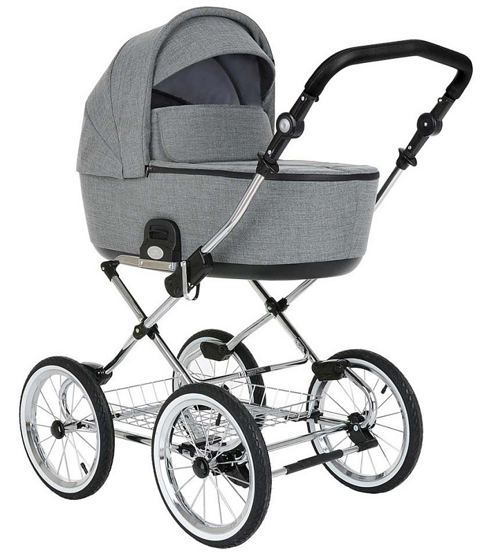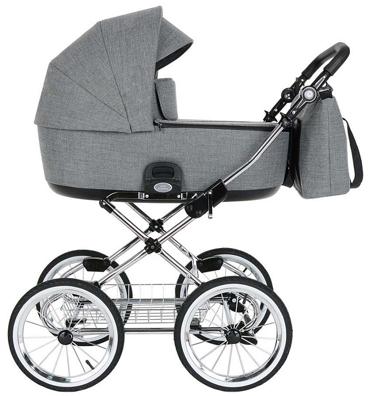 Коляска Roan Bass Next Classic - коляска люлька на хромированной классической раме. Новая европейская детская коляска предназначена для детей от 0 лет. Roan Bass Next Classic изготовлена в строгом стиле с использованием качественной фурнитуры. Лаконичный модный дизайн, простота и удобство надежных механизмов - это то, чем вдохновлялись инженеры фирмы Roan. В следствие мы имеем стильную современную люльку в интересном исполнении и лучшую классическую мягкую раму. Колёса не поворотные, но коляска управляется достаточно легко. Главное достоинство такой рамы, что при движении по труднопроходимой местности колеса не вибрируют, коляска движется очень легко, а идеальная амортизация, основанная на кулисах, закрепленных в четырех точках, обеспечивает хороший сон для ребенка.