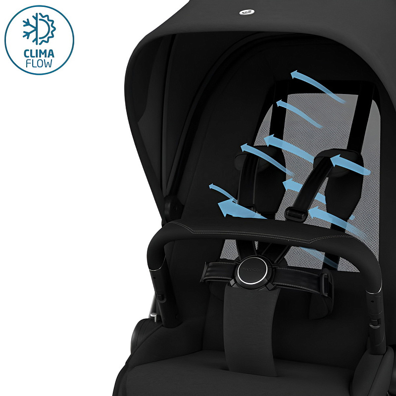 Спинка прогулочного блок Fame оснащена системой ClimaFlow с высокоэффективной дышащей сеткой для максимальной вентиляции, которая помогает вашему ребенку регулировать температуру.