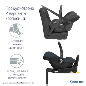 Соответствует самым высоким стандартам безопасности, и для легкой установки этого удобного детского автокресла используйте базу CabrioFix i-Size IsoFix или FamilyFix3