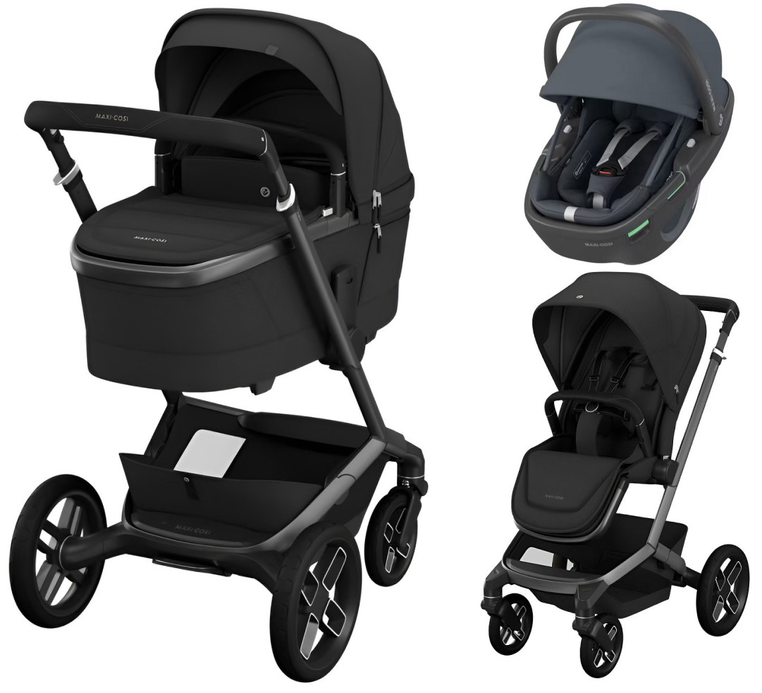 Детская коляска Maxi-Cosi Fame 3 в 1 с автокреслом Coral 360 Essential graphite Twillic Black/Черный