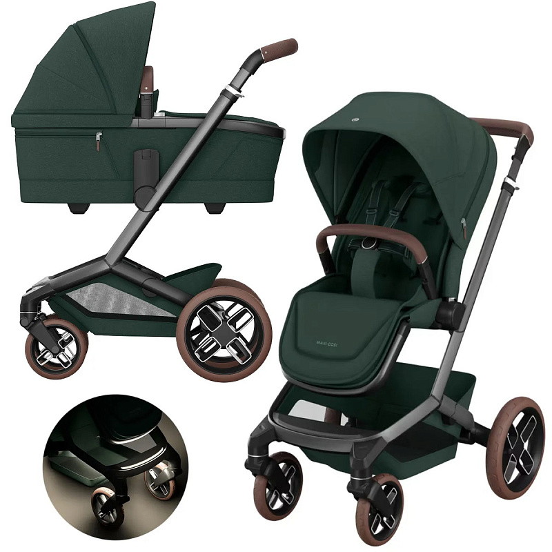 Детская коляска Maxi-Cosi Fame 3 в 1 с автокреслом Coral 360 Essential graphite Twillic Green/зеленый