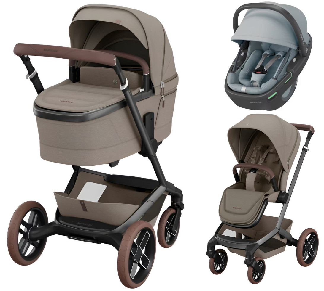 Детская коляска Maxi-Cosi Fame 3 в 1 с автокреслом Coral 360 Essential grey Twillic Truffle/Трюфель(беж)