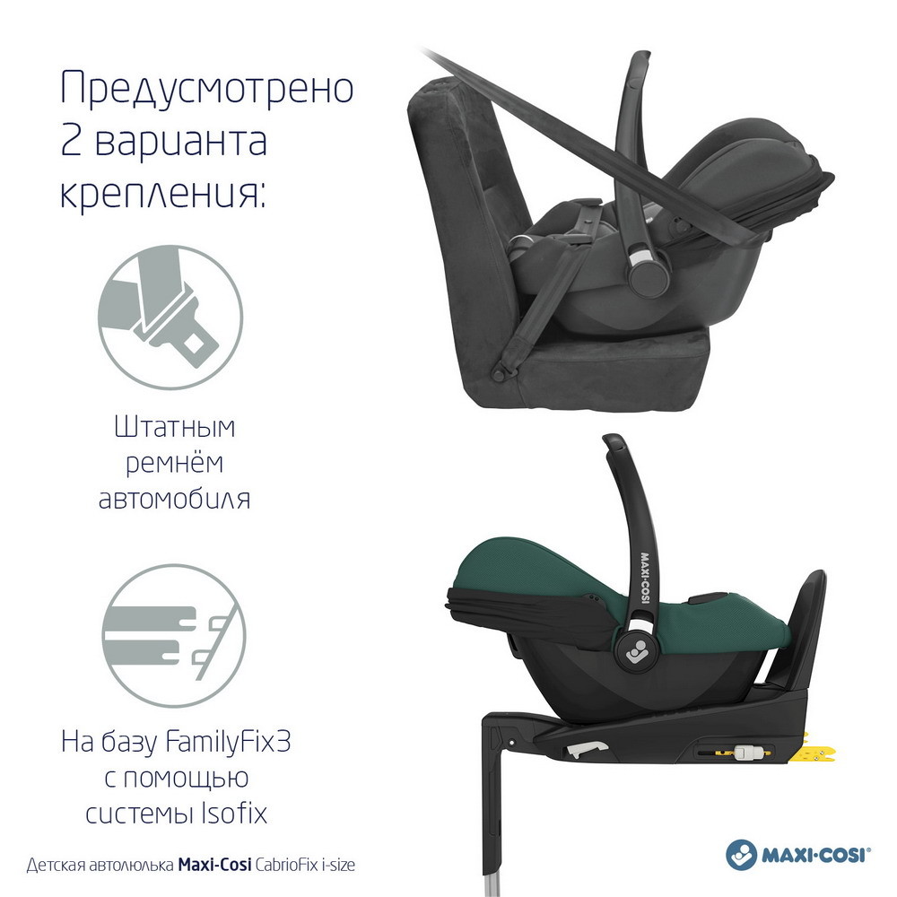CabrioFix i-Size - это идеальное автокресло для начала путешествия вашего ребенка. CabrioFix i-Size соответствует самым высоким стандартам безопасности, сертифицирована по новому стандарту i-Size! CabrioFix i-Size устанавливается на базу и снимается с базы в один клик.