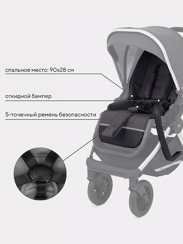 - нижняя часть подножки отделана практичной экокожей - вы без труда избавитесь от следов, оставленных маленькими ботиночками коляска складывается вместе с блоком, независимо от его положения (по ходу/против хода)