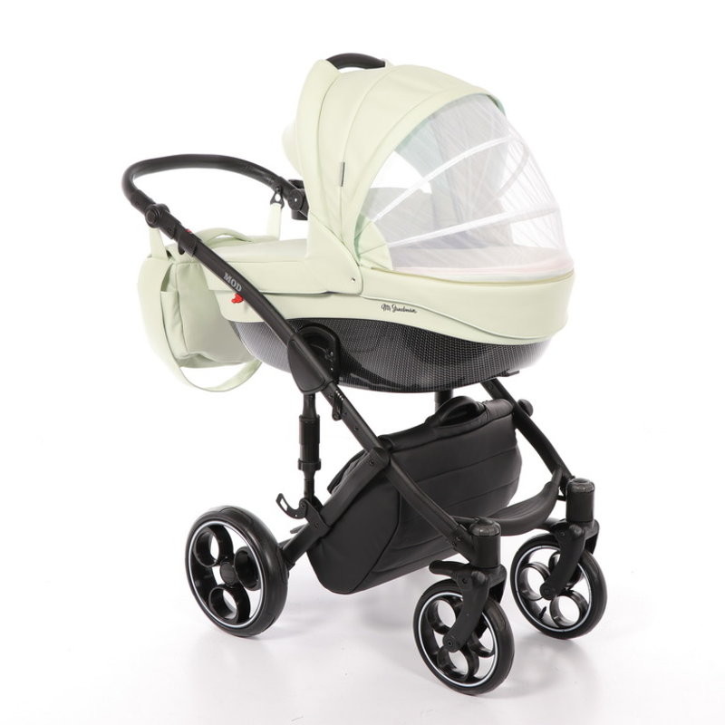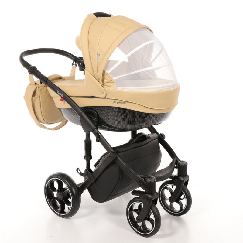 Трехмодульная детская коляска Mr Sandman Mod 3 в 1 отлично адаптирована под российский климат для всесезонного использования при любой погоде, у модели отличные показатели проходимости, качественна система амортизации, обивка выполнена из экологический чистой и безопасной кожи.