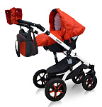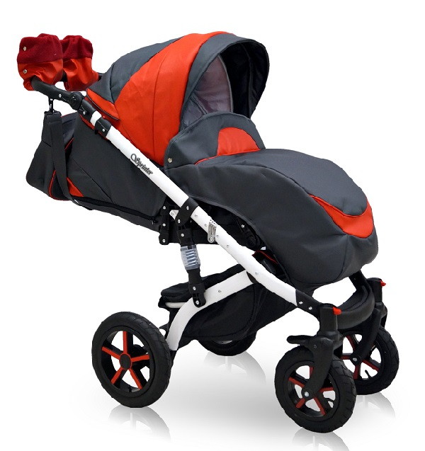 - Передние поворотные колеса, дополненные двойной системой амортизации в комплексе со спортивной рамой увеличивают маневренность сооружения, поэтому путешествия по неровным дорогам не будут беспокоить малыша чрезмерной тряской.