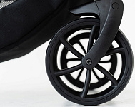 "Вездеходные" колеса и усовершенствованная система амортизации с легкостью поглощают неровности дороги, делая комфортной прогулку как по городским тротуарам, так и по лесным тропинкам.