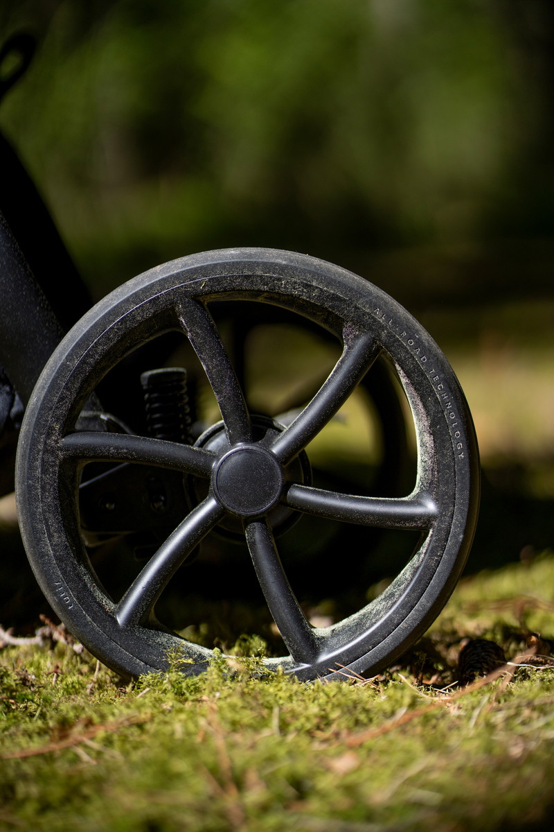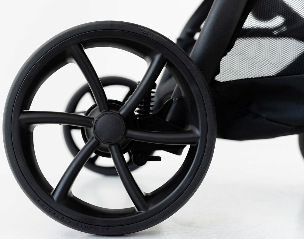 "Вездеходные" колеса и усовершенствованная система амортизации с легкостью поглощают неровности дороги, делая комфортной прогулку как по городским тротуарам, так и по лесным тропинкам.