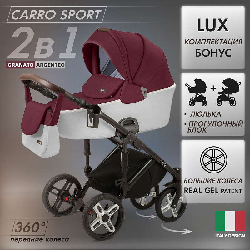 Детская коляска Nuovita Carro Sport 2 в 1 Granato Argenteo/Гранатово-серебристыйНет оценокХарактеристики