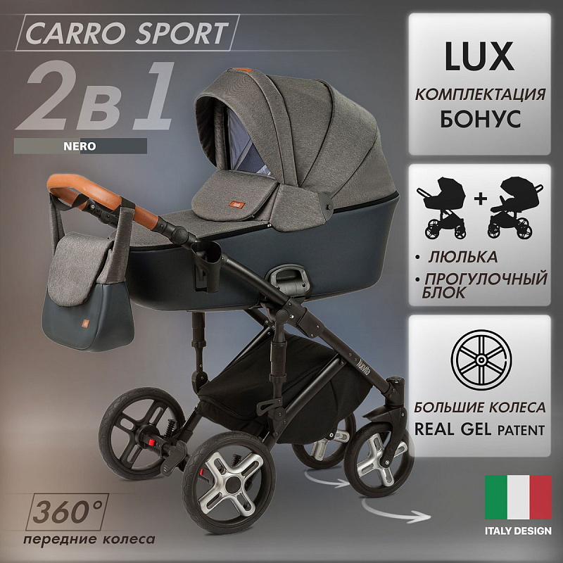 Детская коляска Nuovita Carro Sport 2 в 1 Nero/Черный