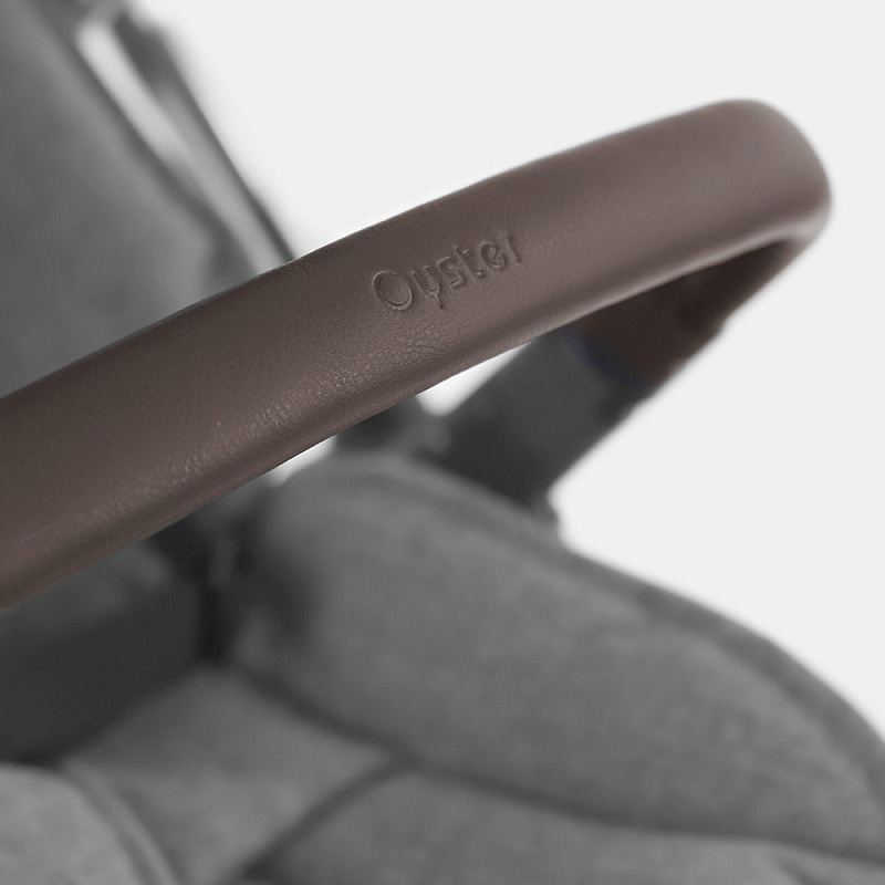 Реверсивный прогулочный блок может устанавливаться в любом направлении: по ходу или против движения. Для сна и отдыха спинка сиденья раскладывается до горизонтального положения. Регулируемая подножка значительно увеличивает спальное место. Плотную ткань подножки можно вывернуть наружу, превращая сиденье коляски Oyster 3 в уютное гнездышко для малыша. Бампер с оплеткой из экокожи отстёгивается с любой стороны, имеет стильное исполнение.