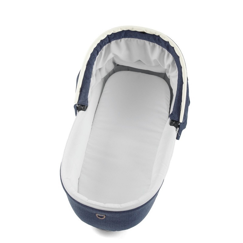 Коляска с классической люлькой, которая дополнена выдвижными ножками для использования дома в качестве колыбели. Можно использовать в автомобиле (комплект Kit Auto продается отдельно). Модель на узкой раме преодолевает даже ограниченные пространства. Имеется большая и вместительная корзина для покупок.