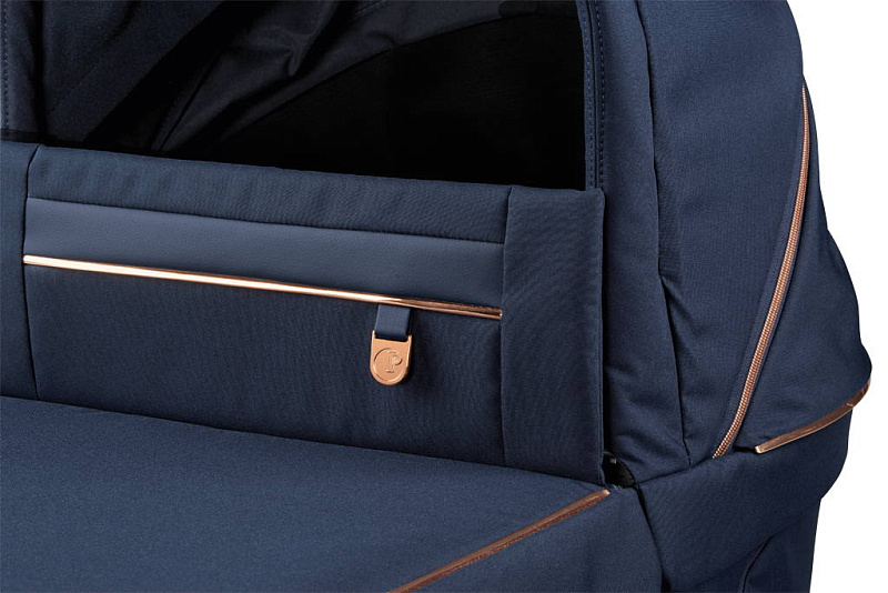- Ручка из экокожи для переноски. Благодаря специальной системе складывания вы сможете без труда опустить капюшон даже с малышом на руках.