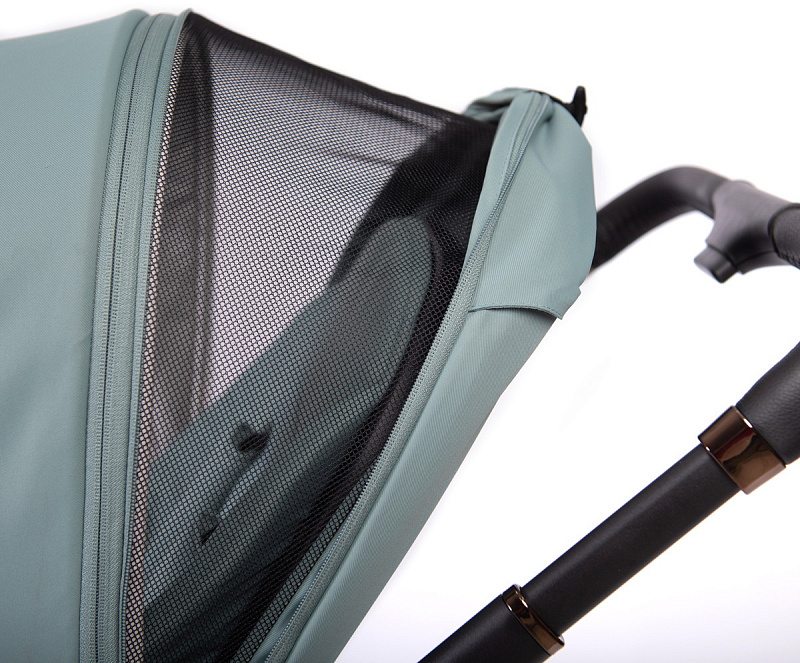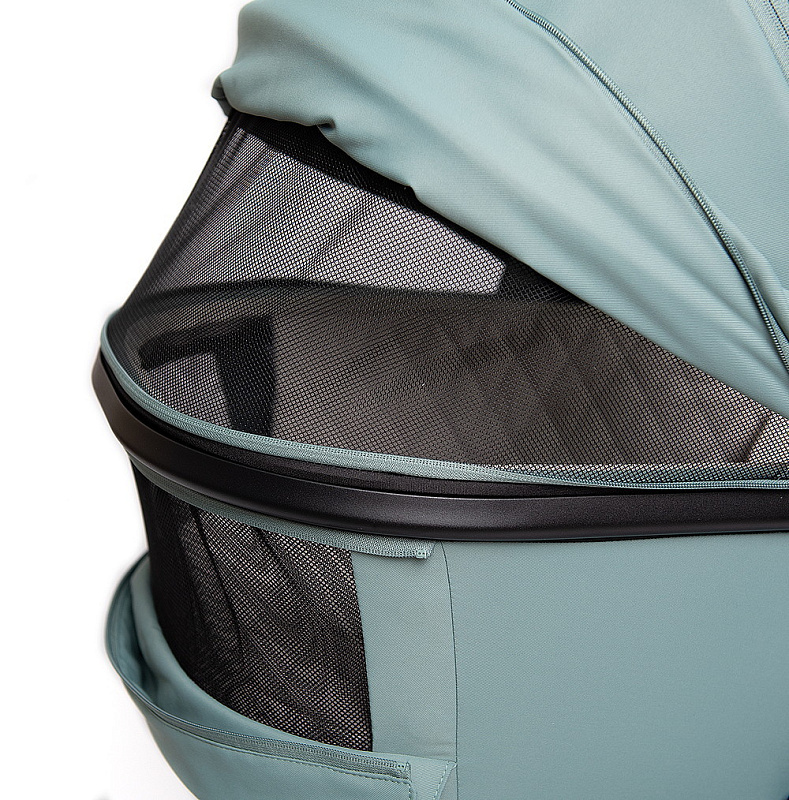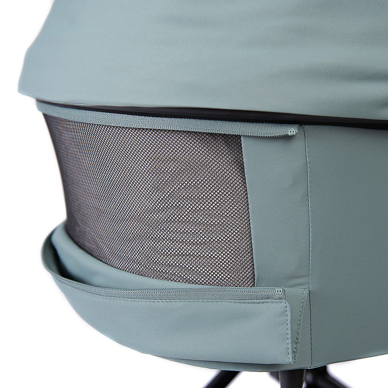 <li>Для лучшей циркуляции воздуха в жаркие летние дни в капоре люльки и у изголовья есть москитная сетка, спрятанная под молнией</li>