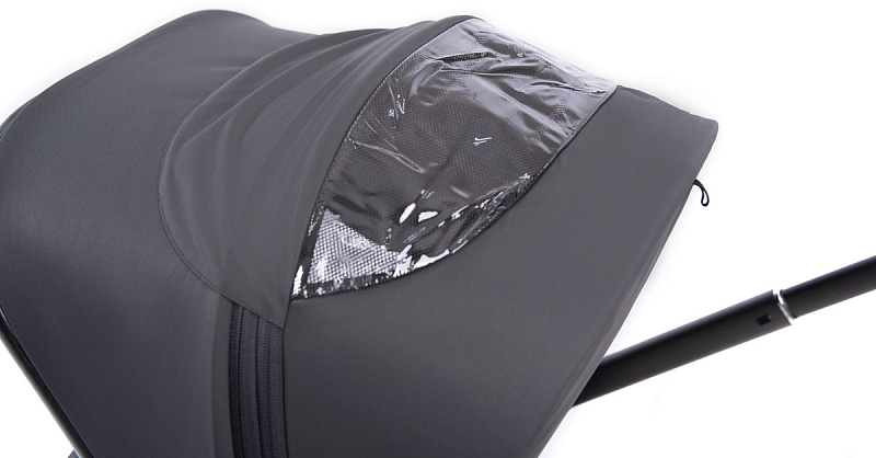 - За ребенком легко наблюдать благодаря смотровому окошку на капоре, он выполнен из силикона