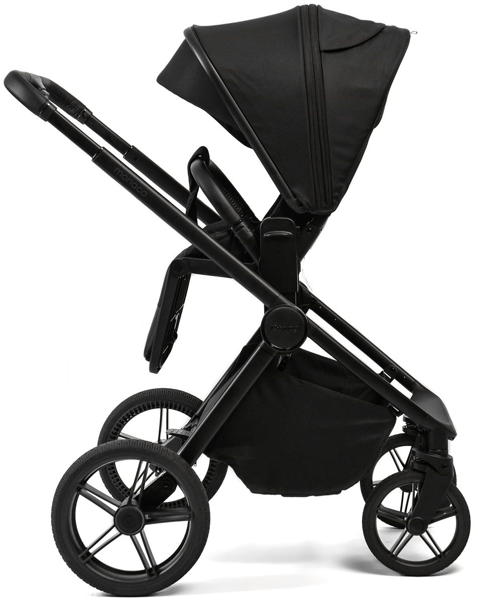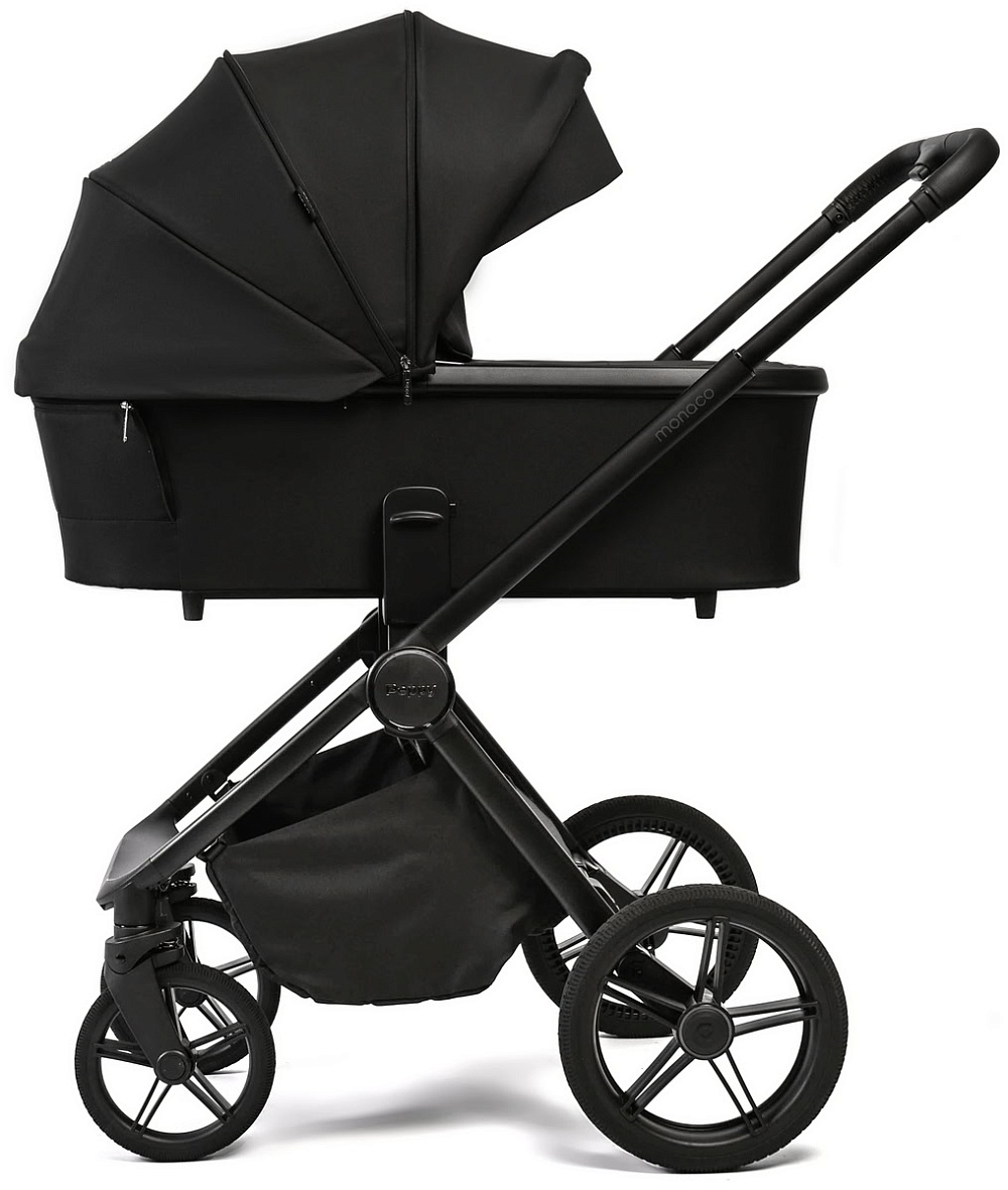 Детская коляска Peppy Monaco 3 в 1 с автокреслом First Black (черный), рама черная матовая