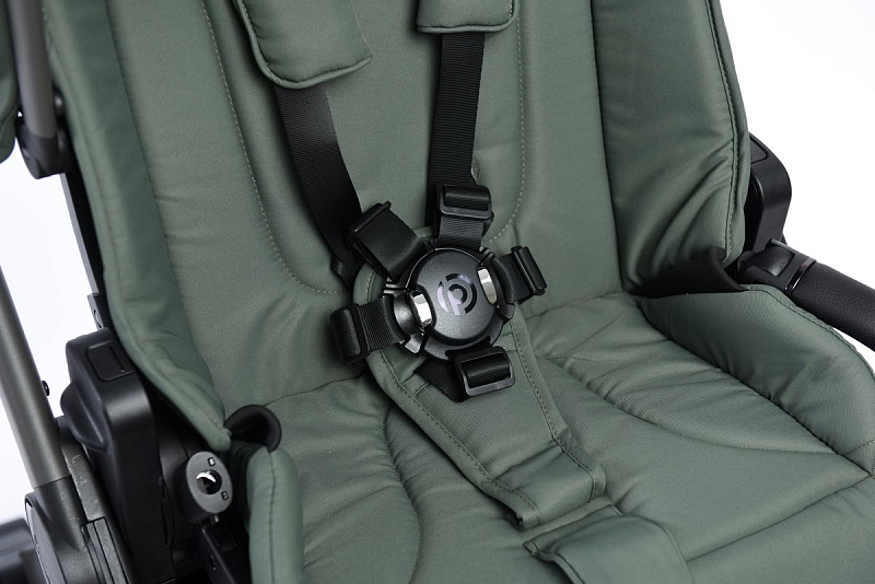 - Защиту от выпадения малыша из коляски обеспечат пятиточечные ремни безопасности и бампер