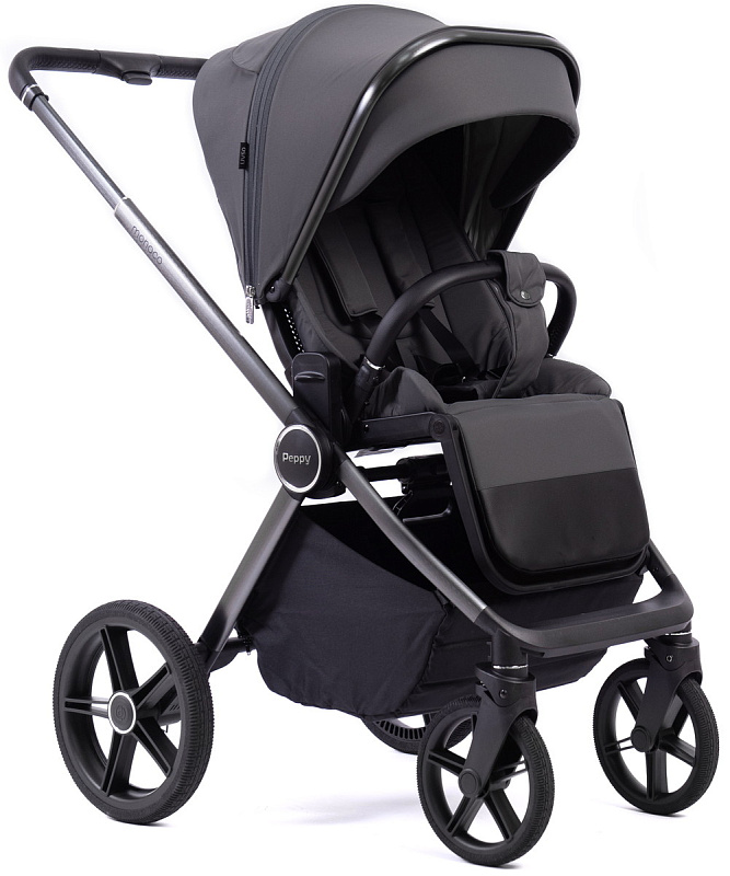 Детская коляска Peppy Monaco 3 в 1 с автокреслом Rise Black Antrazit (графитовый), рама серая