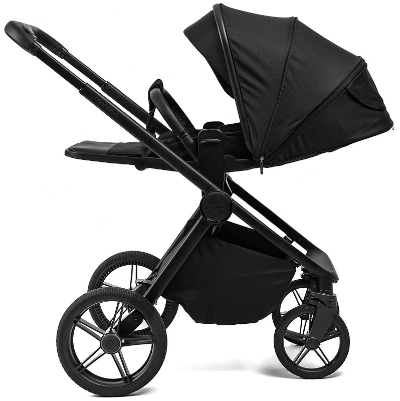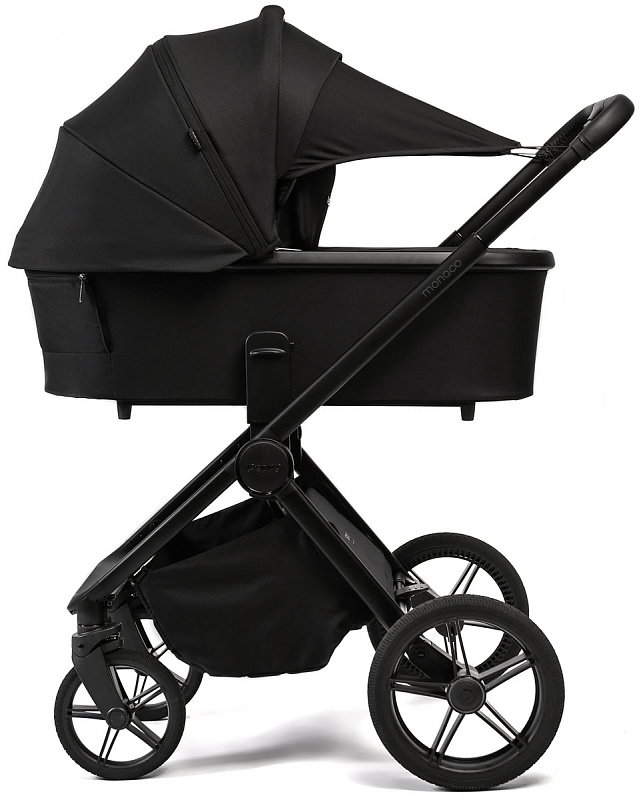 Детская коляска Peppy Monaco 3 в 1 с автокреслом Rise Black Black (черный), рама черная матовая