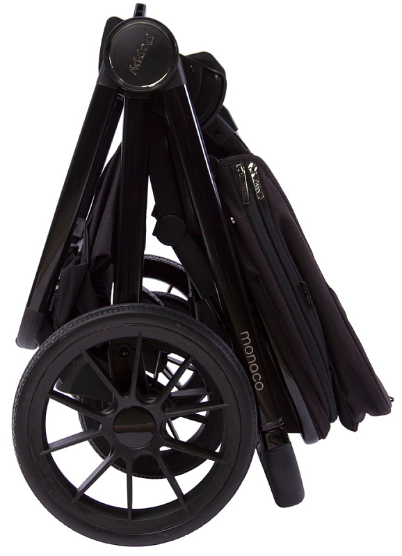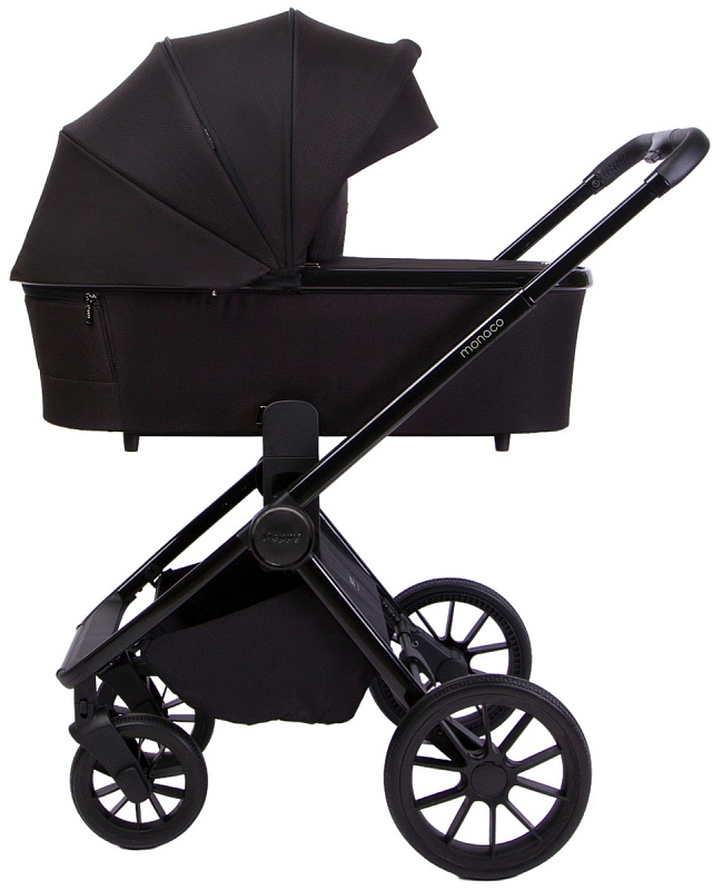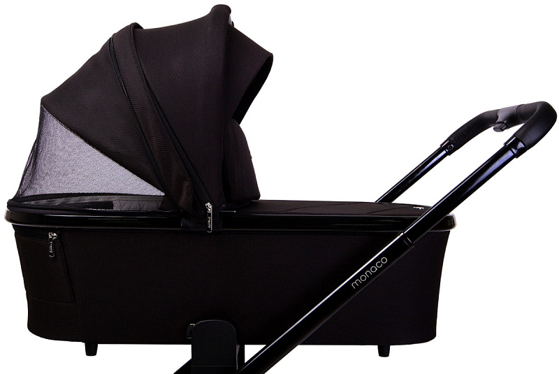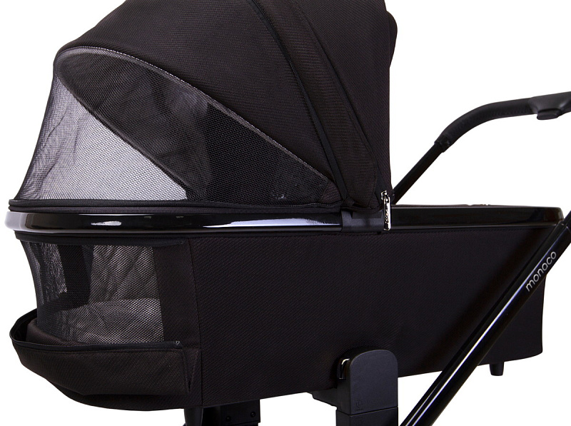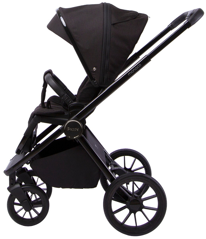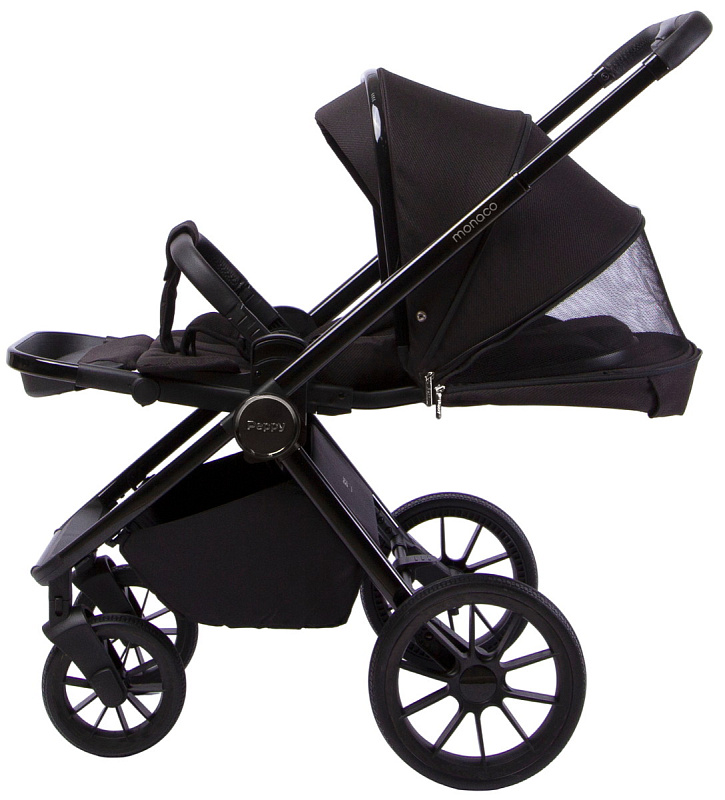 Детская коляска Peppy Monaco 3 в 1 с автокреслом Rise Black Brilliant black (черный), рама черный глянец