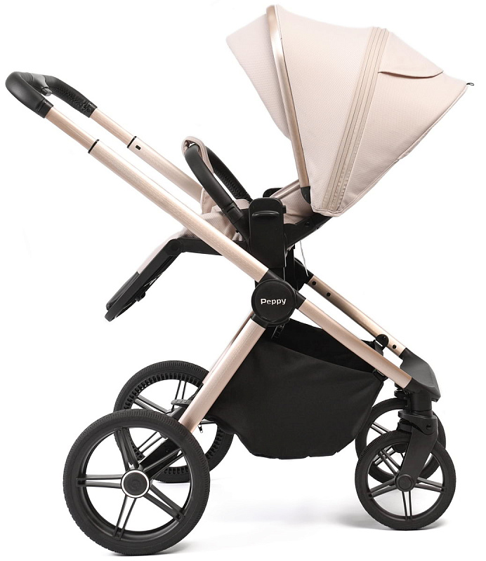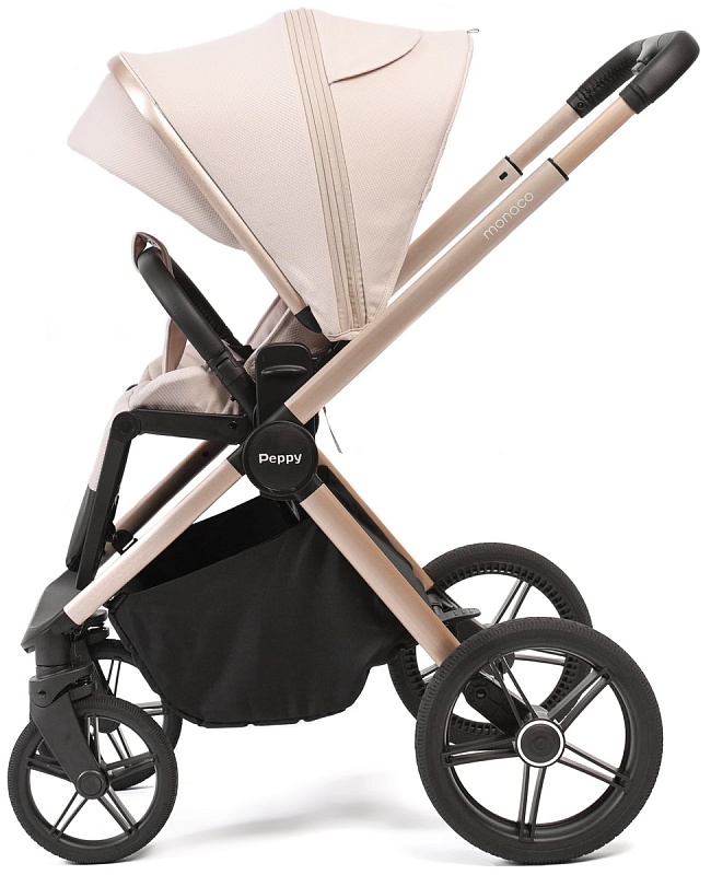 Детская коляска Peppy Monaco 3 в 1 с автокреслом Rise Milk Beige (бежевый), рама беж, шлифованный алюминий