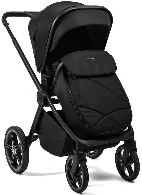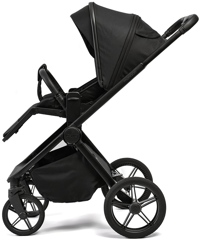 Детская коляска Peppy Monaco 3 в 1 с автокреслом Rise Milk Black (черный), рама черная матовая