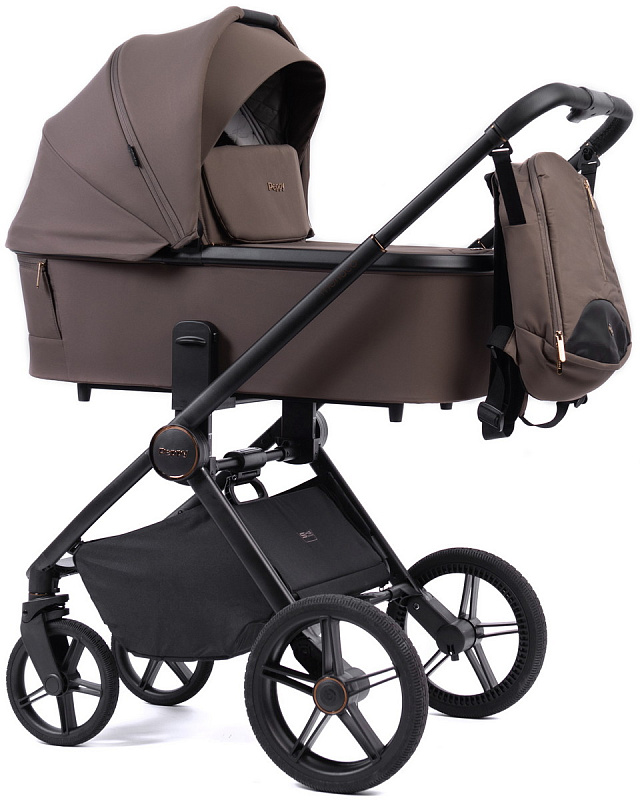 Детская коляска Peppy Monaco 3 в 1 с автокреслом Rise Milk Brownie коричневый, рама черная