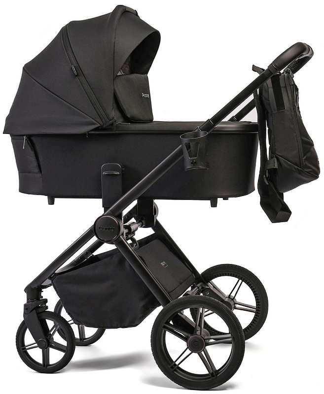Детская коляска Peppy Monaco 3 в 1 с автокреслом Verona Beige Black (черный), рама черная матовая