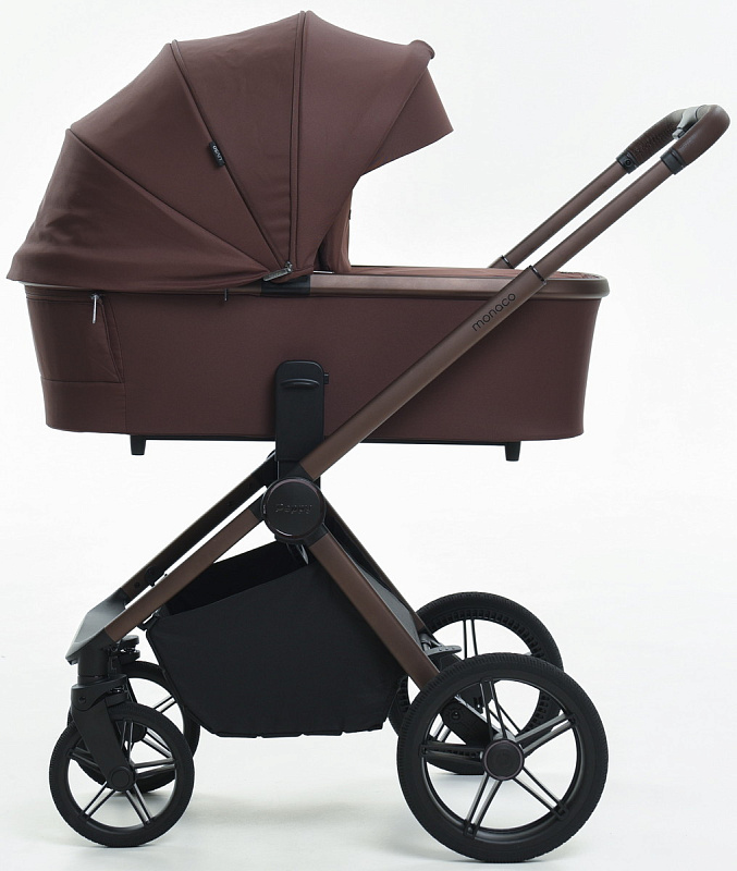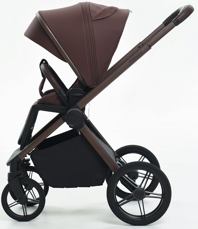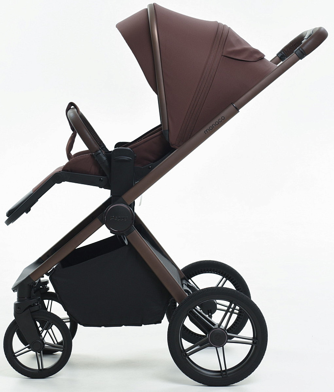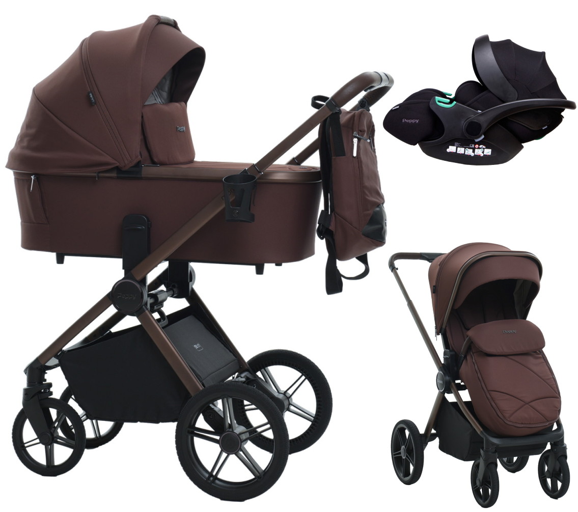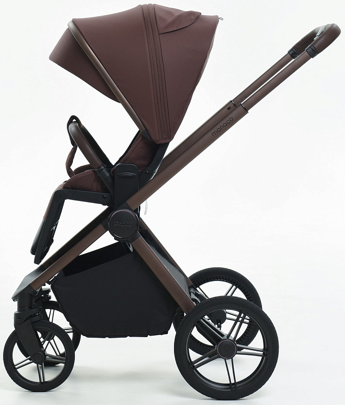 Детская коляска Peppy Monaco 3 в 1 с автокреслом Verona Black Burgundy винный, рама коричневая