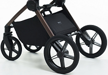 Система амортизации передних колес снижает эффект тряски при езде по неровным дорогам, и позволяет мягко преодолевать бордюры. На задней оси стоят мягкие пружины, спрятаны в пластиковый каркас от попадания пыли и грязи