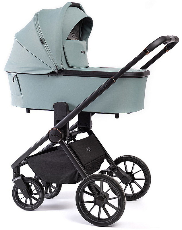 Детская коляска Peppy Monaco 3 в 1 с автокреслом Verona Black Mint (мятный), рама черная