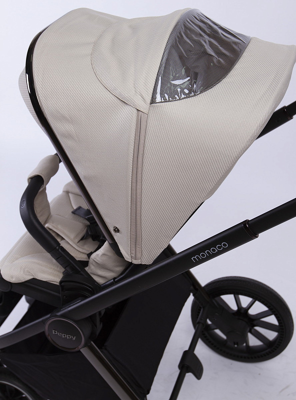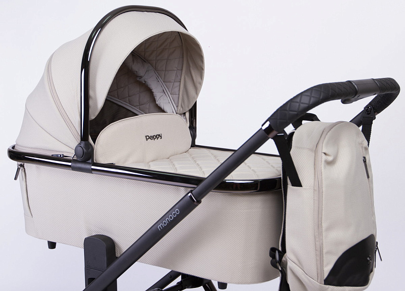 - Peppy Monaco укомплектована вместительной корзиной, которая увеличивается в размерах и оснащена двумя дополнительными карманами для мелочей, где удобно спрятать москитную сетку