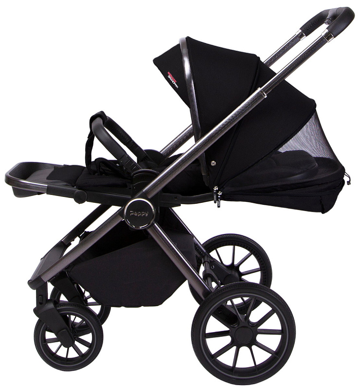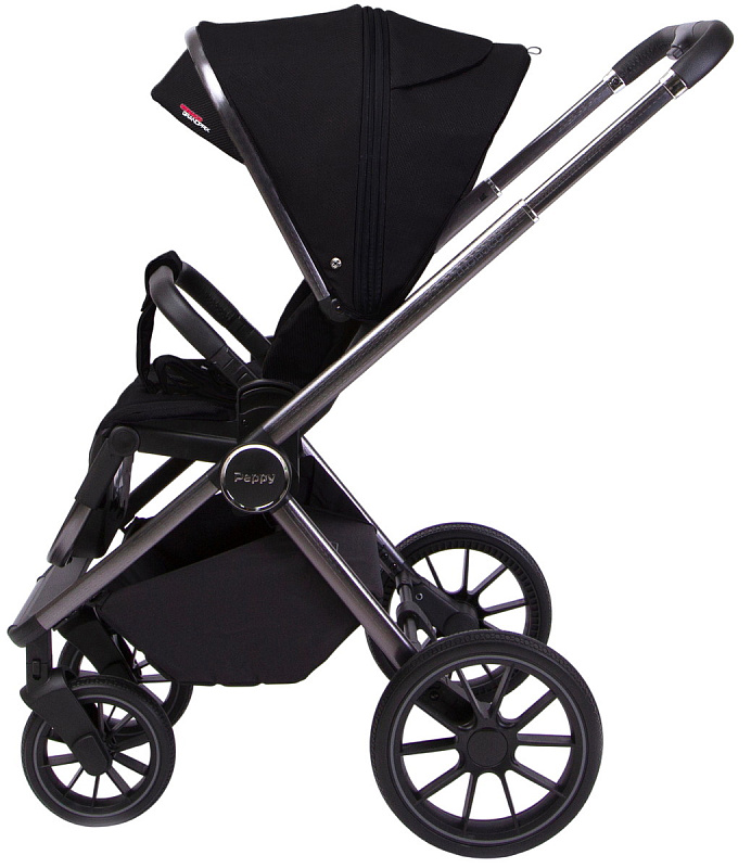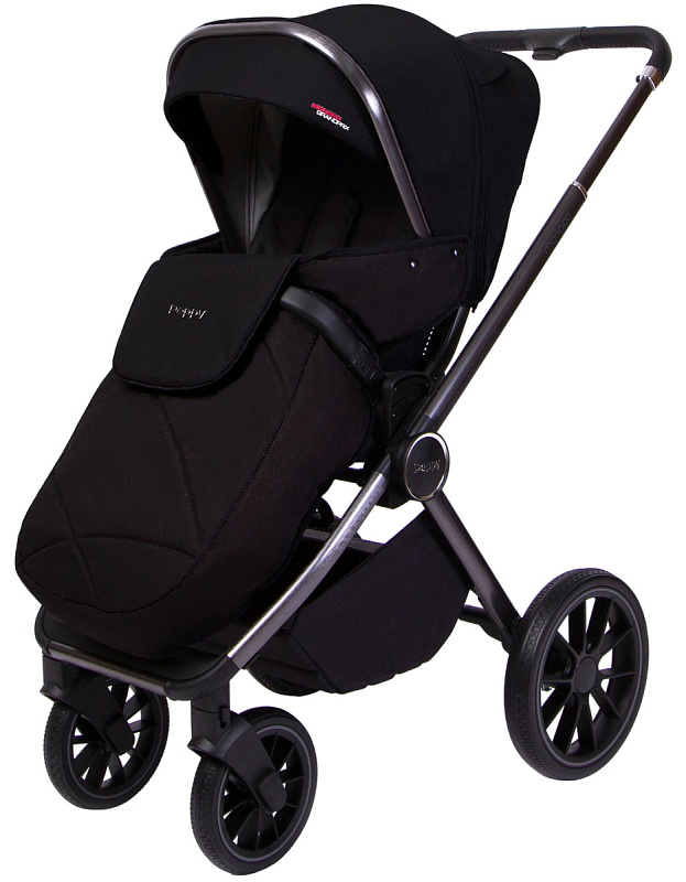 Детская коляска Peppy Monaco GP 3 в 1 с автокреслом First Black черный, рама темно-серая