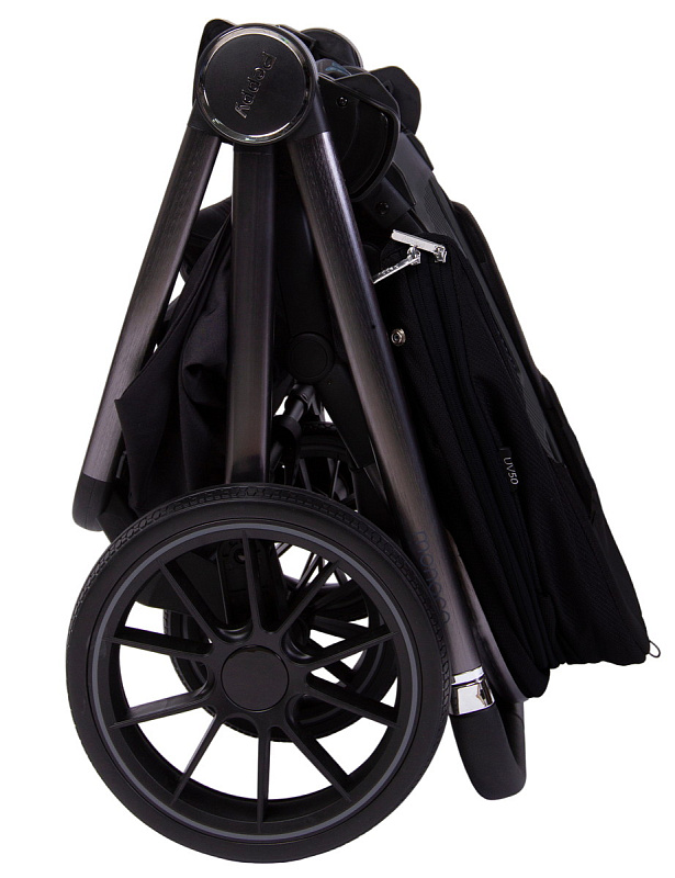 Шасси складывается с помощью ручки над корзиной. Складывание рамы с прогулочным блоком возможно в любом направлении.