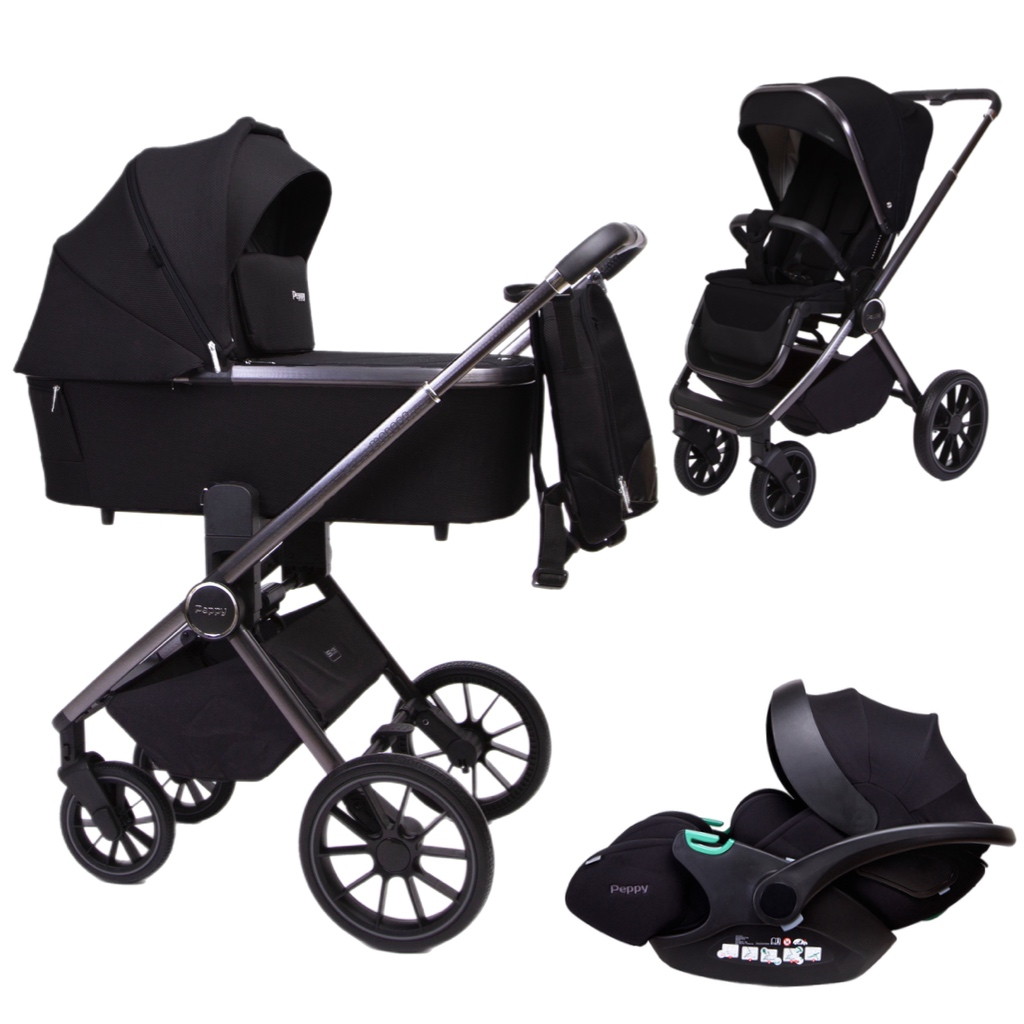 Детская коляска Peppy Monaco GP 3 в 1 с автокреслом Verona Black черный, рама темно-серая