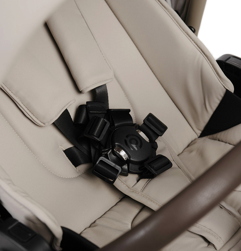 Защиту от выпадения малыша из коляски обеспечат пятиточечные ремни безопасности с современным магнитным замком, и бампер;