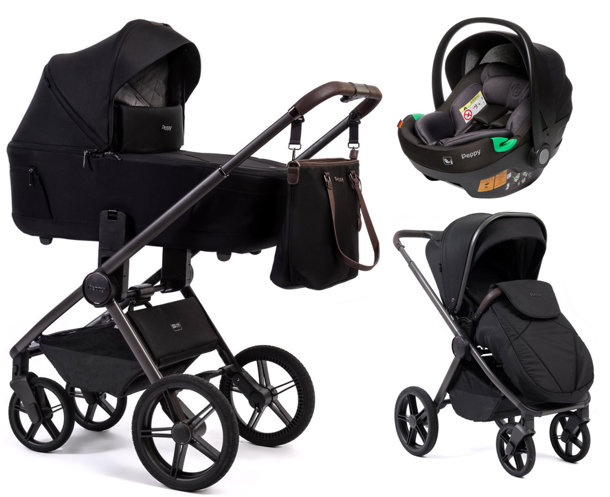 Детская коляска Peppy Monaco Thermo 3 в 1 с автокреслом First Black