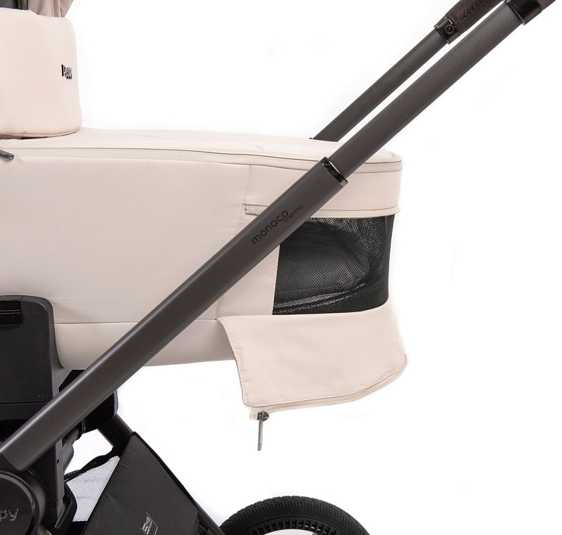 Peppy Monaco укомплектована вместительной корзиной, которая увеличивается в размерах и оснащена двумя дополнительными карманами для мелочей, где удобно спрятать москитную сетку;
