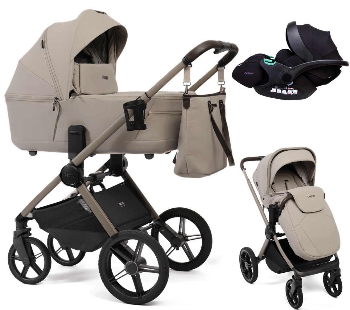 Детская коляска Peppy Monaco Thermo 3 в 1 с автокреслом Verona Black Latte (бежевый), рама бежевая