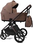 Детская коляска Peppy Soho 3 в 1 с автокреслом Rise Black Cappuccino (капучино) рама шоколад