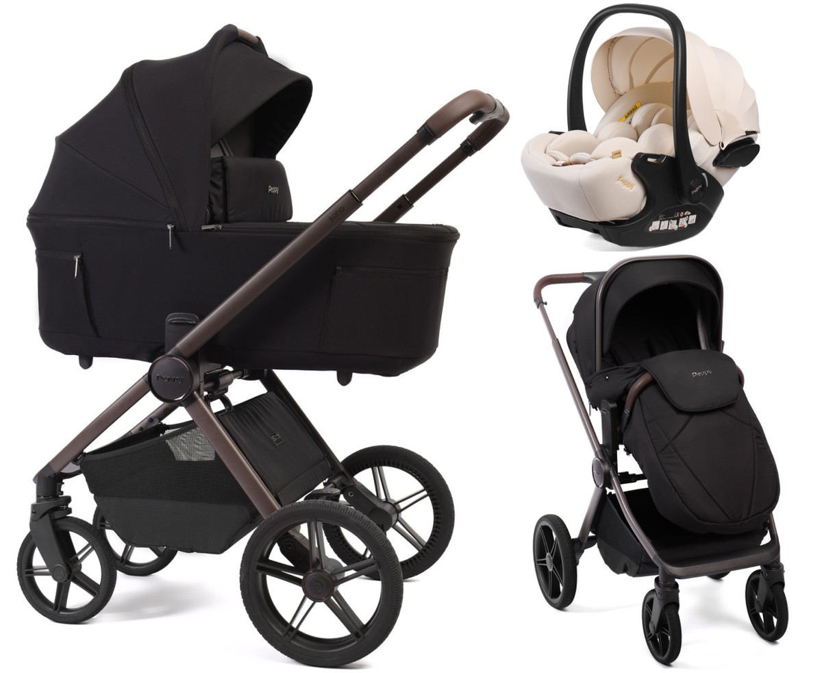 Детская коляска Peppy Soho 3 в 1 с автокреслом Verona Beige Black (черный) рама шоколад