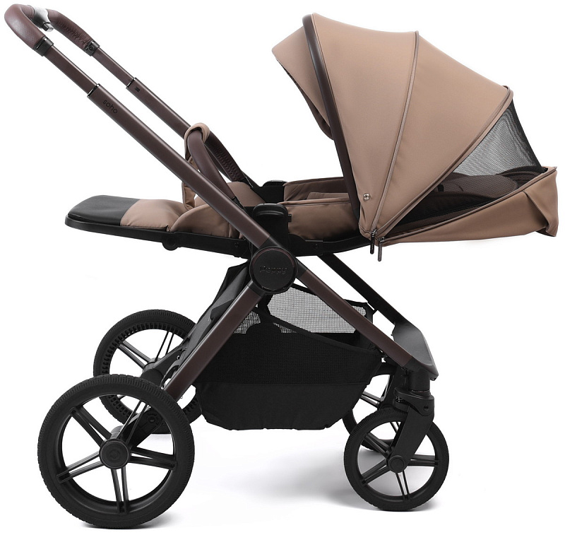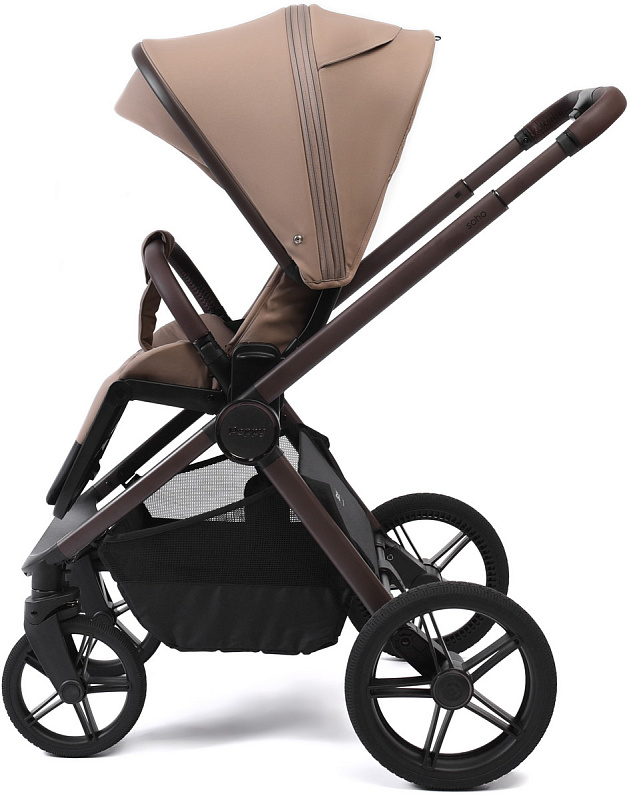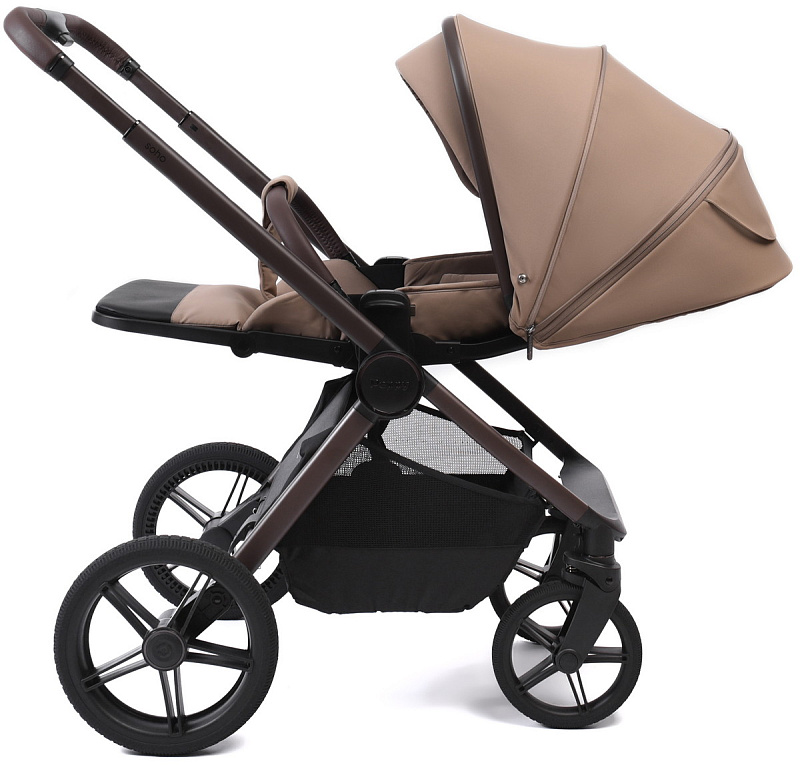 Детская коляска Peppy Soho 3 в 1 с автокреслом Verona Black Sand (песочный) рама шоколадНет оценокХарактеристики