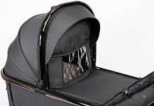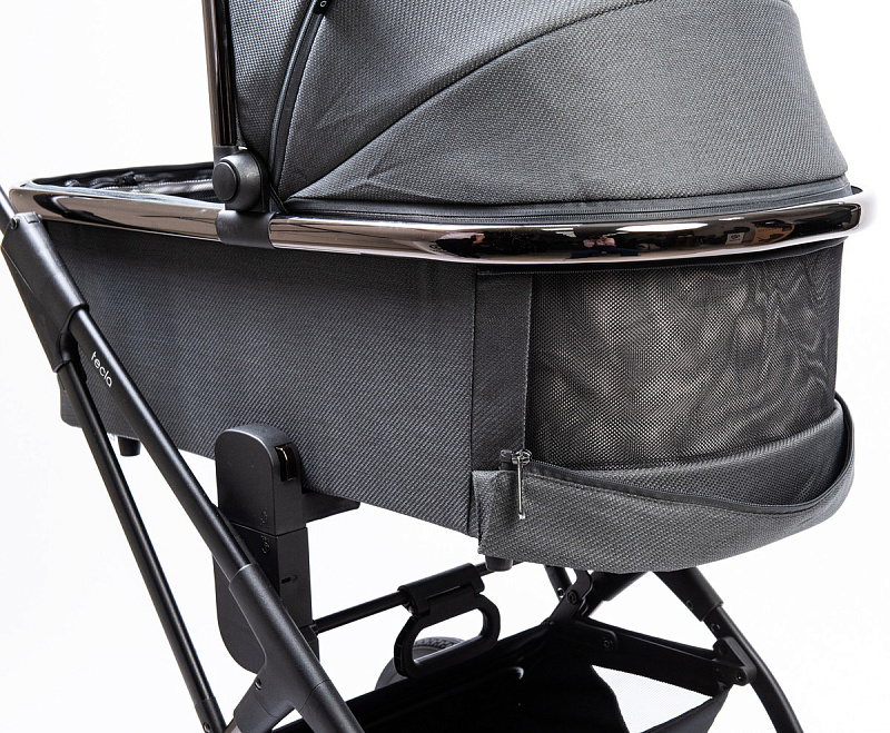 - Для лучшей циркуляции воздуха в жаркие летние дни в капоре люльки и у изголовья есть москитная сетка, спрятанная под молнией