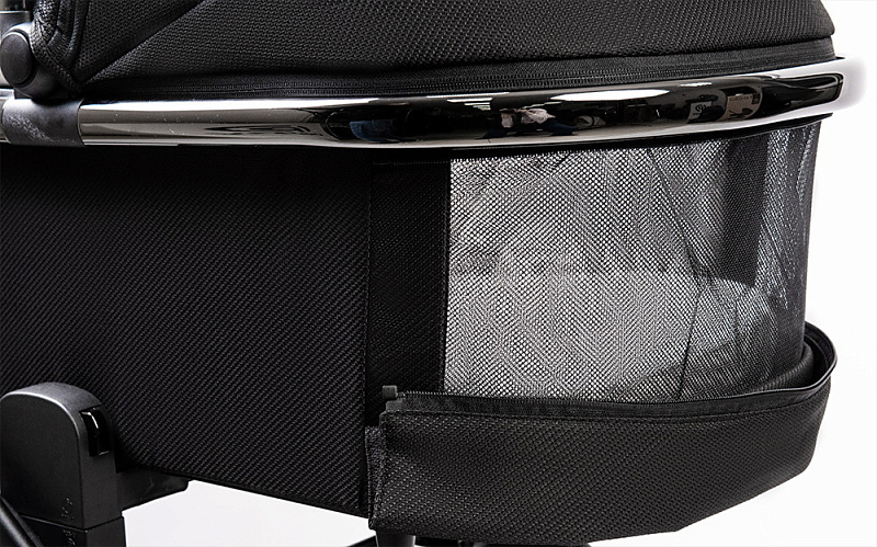Для лучшей циркуляции воздуха в жаркие летние дни в капоре люльки и у изголовья есть москитная сетка, спрятанная под молнией
