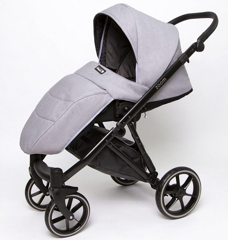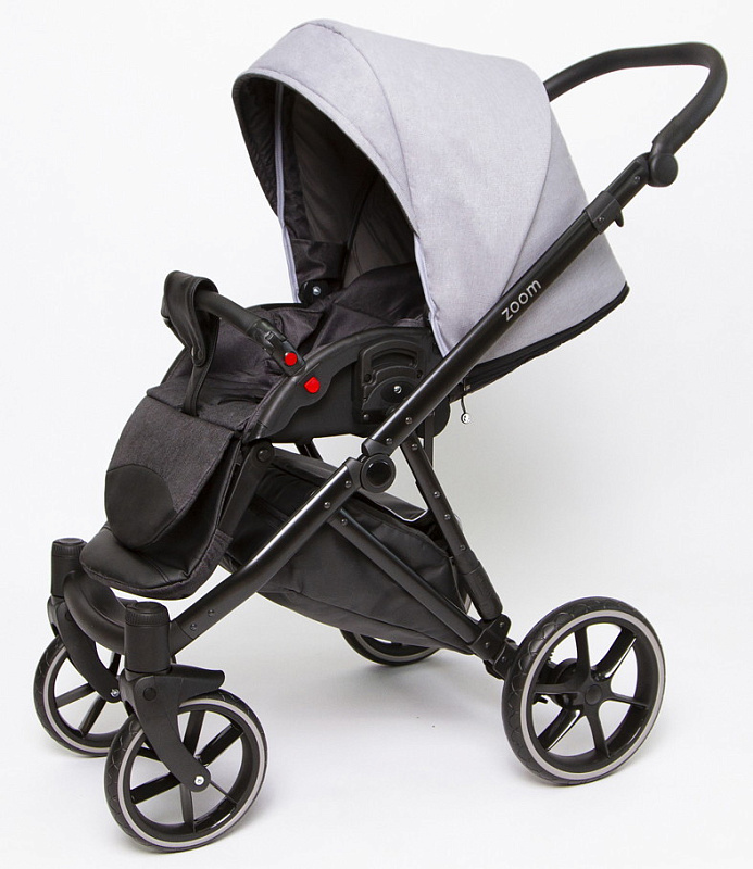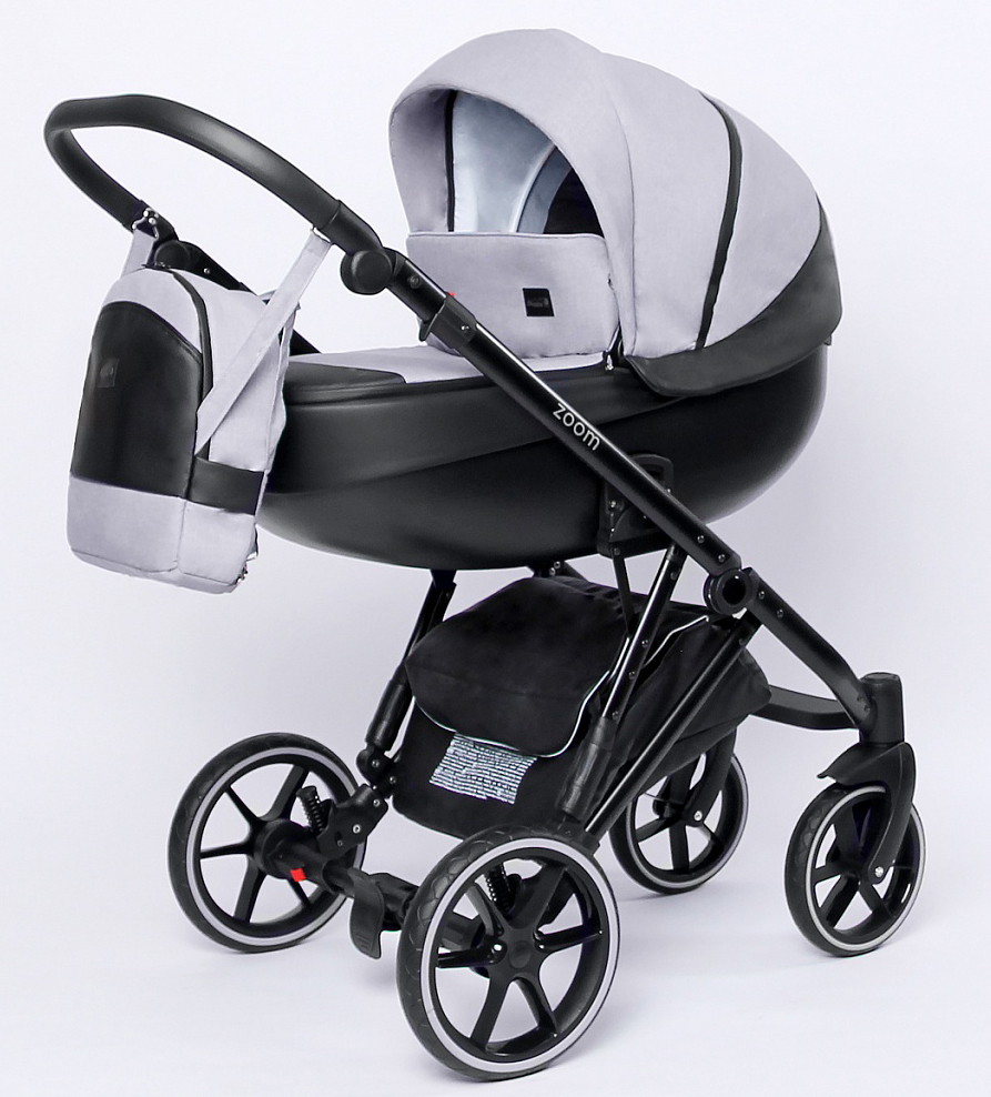 Детская коляска Peppy Zoom 2 в 1 06 Black экокожа/Серая ткань